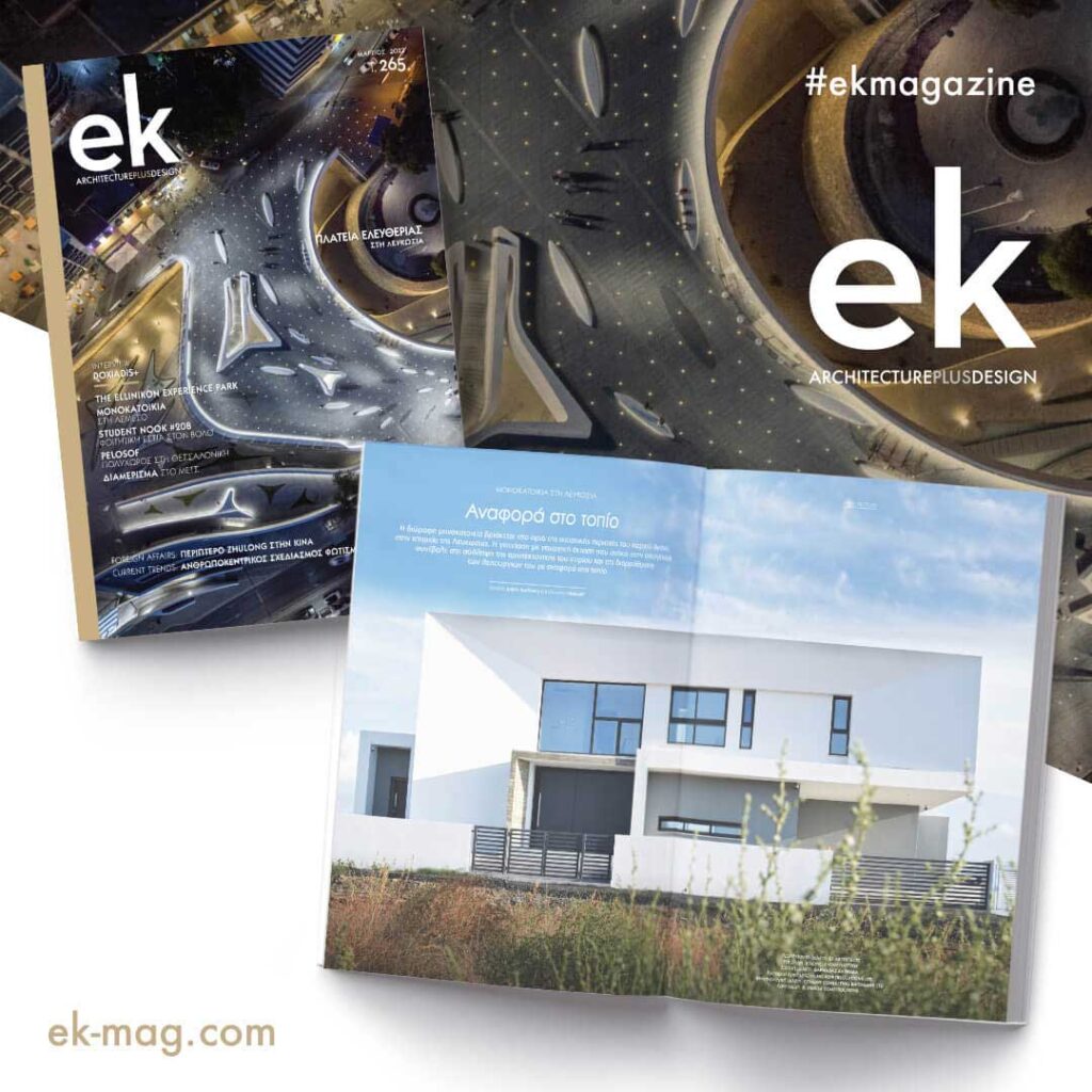 AKAKI HOUSE FEATURED AT EG-MAGAZINE Our project ‘AKAKI HOUSE’ was published in the greek ΕΚ magazine in their March 2022 issue. You can now find it in Cyprus. -